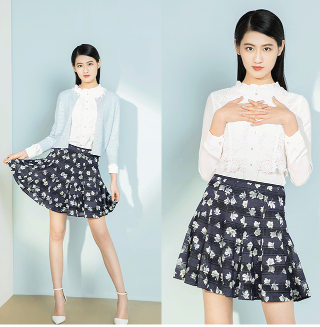 JZ玖姿宫廷水彩印花,柔美梦幻的宫廷复古风格,配合灵动的水彩画,营造出一个非常女性化的系列。搭配上蝴蝶结和蕾丝,提高了整体的精致度和时尚感,仙女范儿十足。