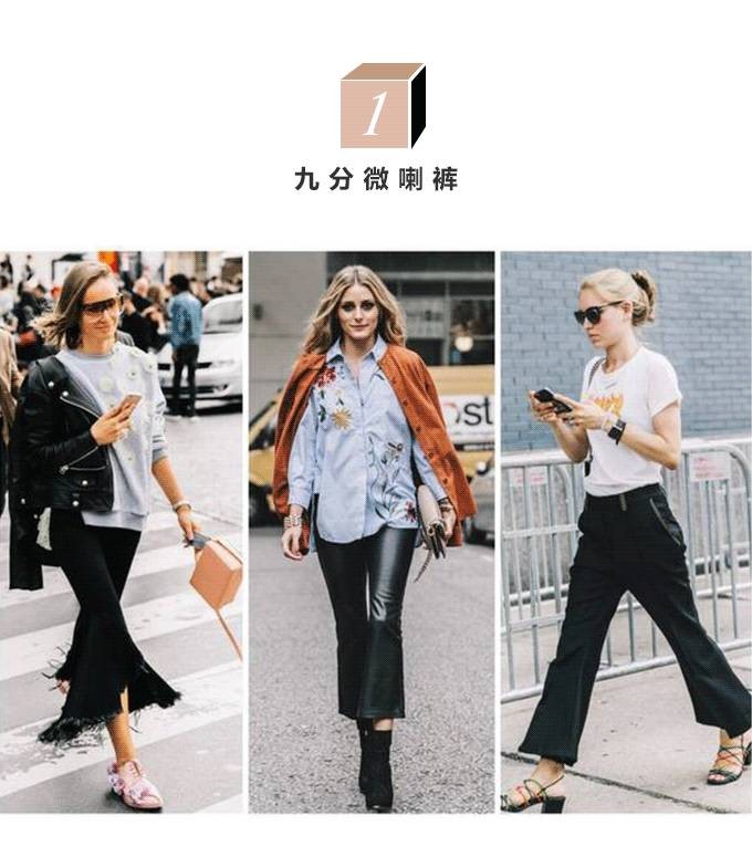 时尚圈的潮流总是轮流转,80年代爸爸妈妈穿过的喇叭裤,最近成了时尚达人必备单品。而刚刚露脚踝的九分微喇裤,大腿到膝盖处的收紧,小腿处向外扩张的轮廓,会让你形成让大腿“变细”的错觉,而恰到好处的长度又会让你显得高挑。