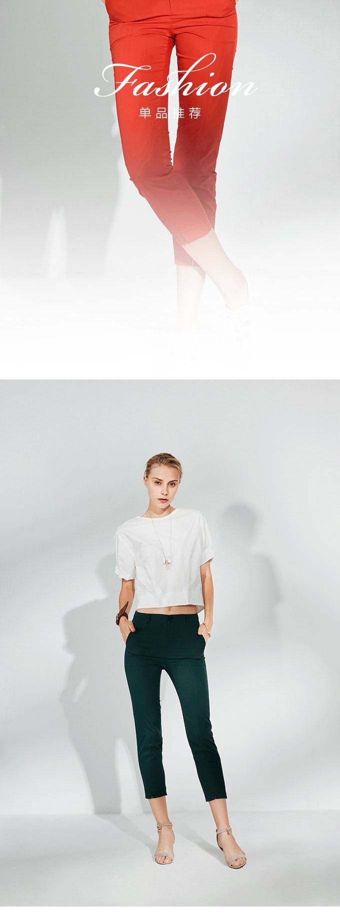舒适不粘身的高弹锦纶料,一直备受玖姿女人宠爱,廓形年轻时尚,前片分割的设计很好的修饰了裤型的效果,显得修长笔直。本季大胆运用亮红色,充满都市气息,彰显柔美又热情的气质,而墨绿色则是当下最流行颜色趋势之一。