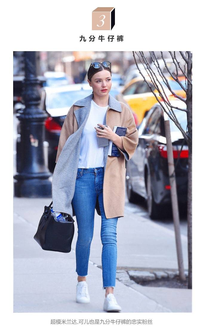 一条紧致修身的九分牛仔裤最能显出自己的好身材,它也是许多模特最爱的显瘦单品。由于九分修身牛仔裤在小腿部分有收紧的设计,所以“肉肉的腿肚子”能很好的避免。