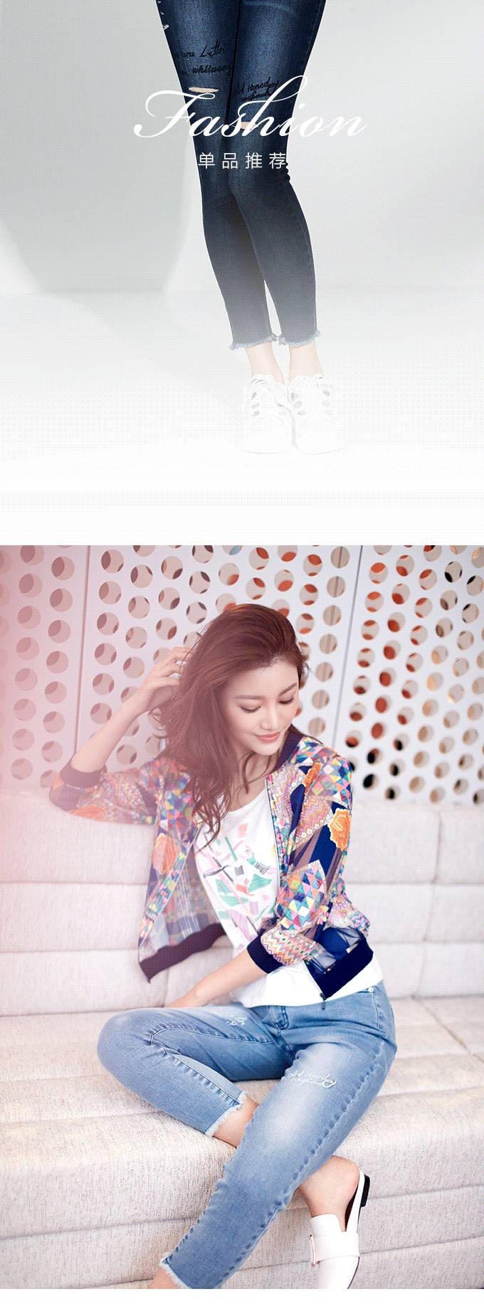 JZ玖姿时尚九分牛仔裤,破洞装饰,俏皮减龄,非常百搭,今年夏日的必备单品之一。