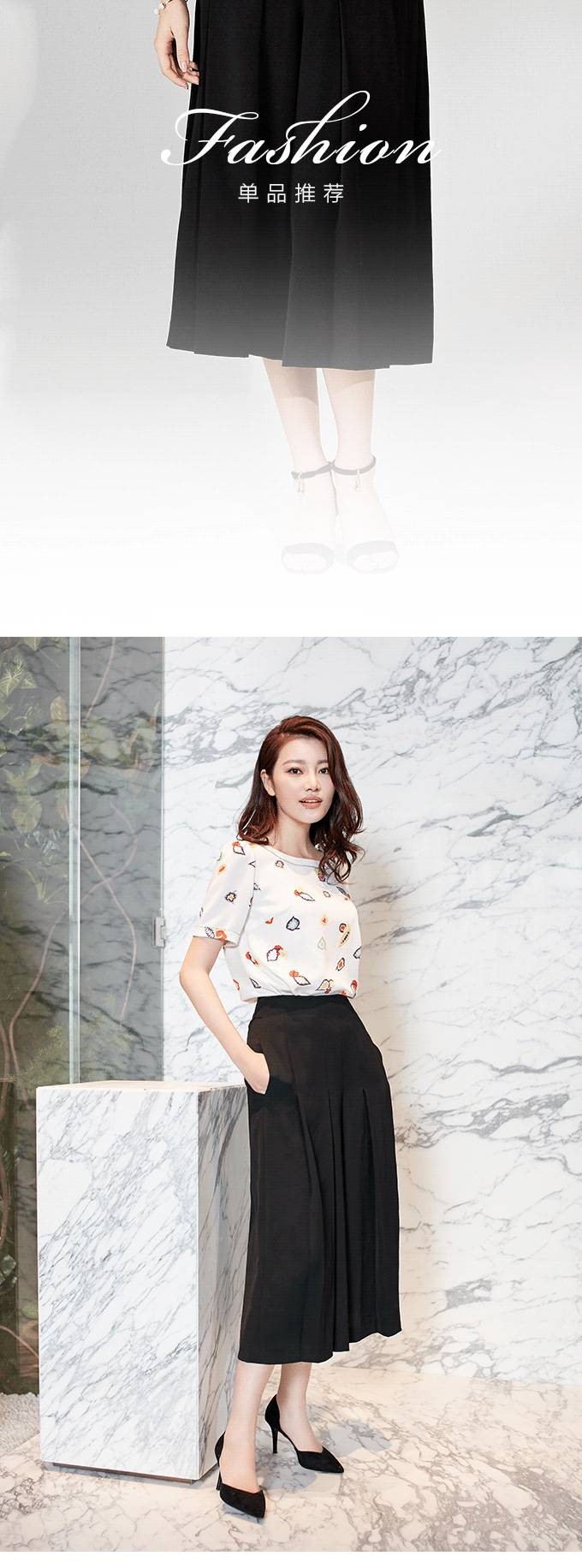此款黑色九分阔腿裤较常规款式更宽松,其铜氨面料,像真丝般的手感及品质感,上身舒适度极高。
