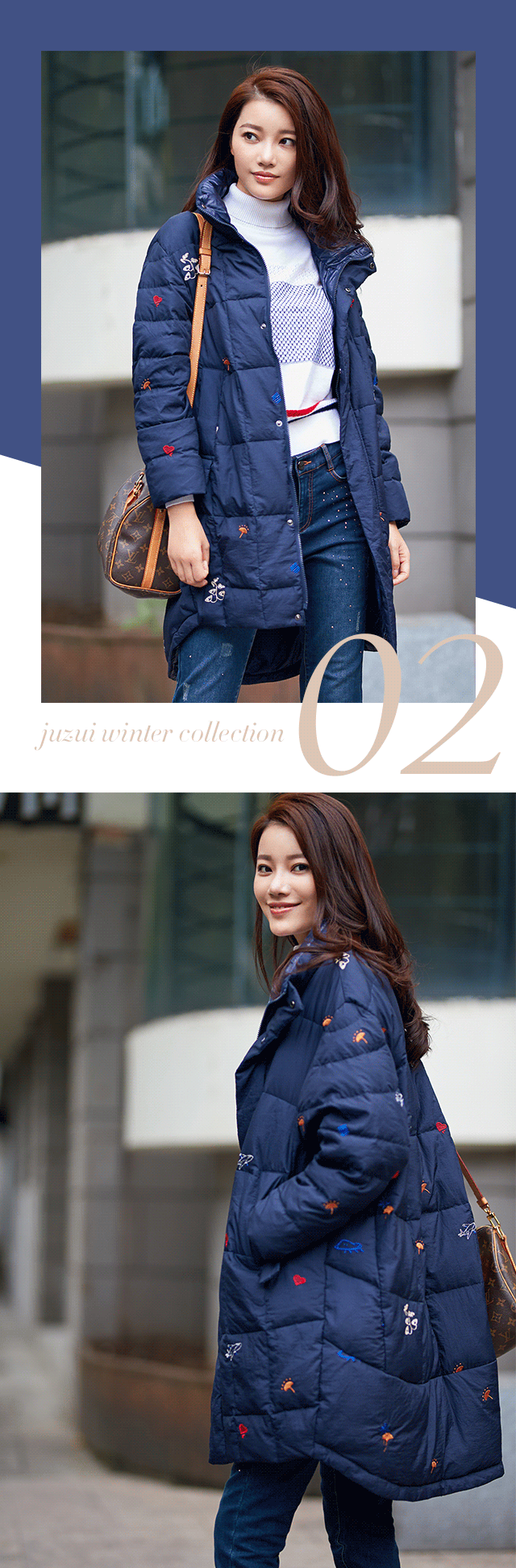 一望无垠的夜空承载着少女时代无尽的乐趣,那时,宇宙中不止闪闪发光的星辰,还有四处遨游的大象,甚至所有不切实际的幻想。JZ玖姿把童心收藏,以绘画形式装饰于羽绒服之上,闪耀过去,照亮未来。
