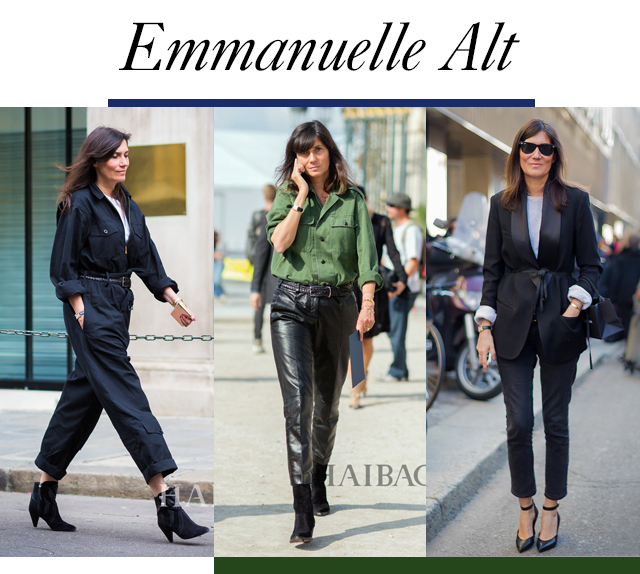 说起对裤装情有独钟的法国女人,那么就不得不提法国版《VOGUE》的主编Emmanuelle Alt(伊曼纽尔·奥特)了,无论日常街拍还是出席活动,干练裤装永远是她的最爱,上搭廓形西装,低调简约却有十足气场,加上All Black的拿手好戏,带点沧桑质感,称得上Easy Chic的典范了。