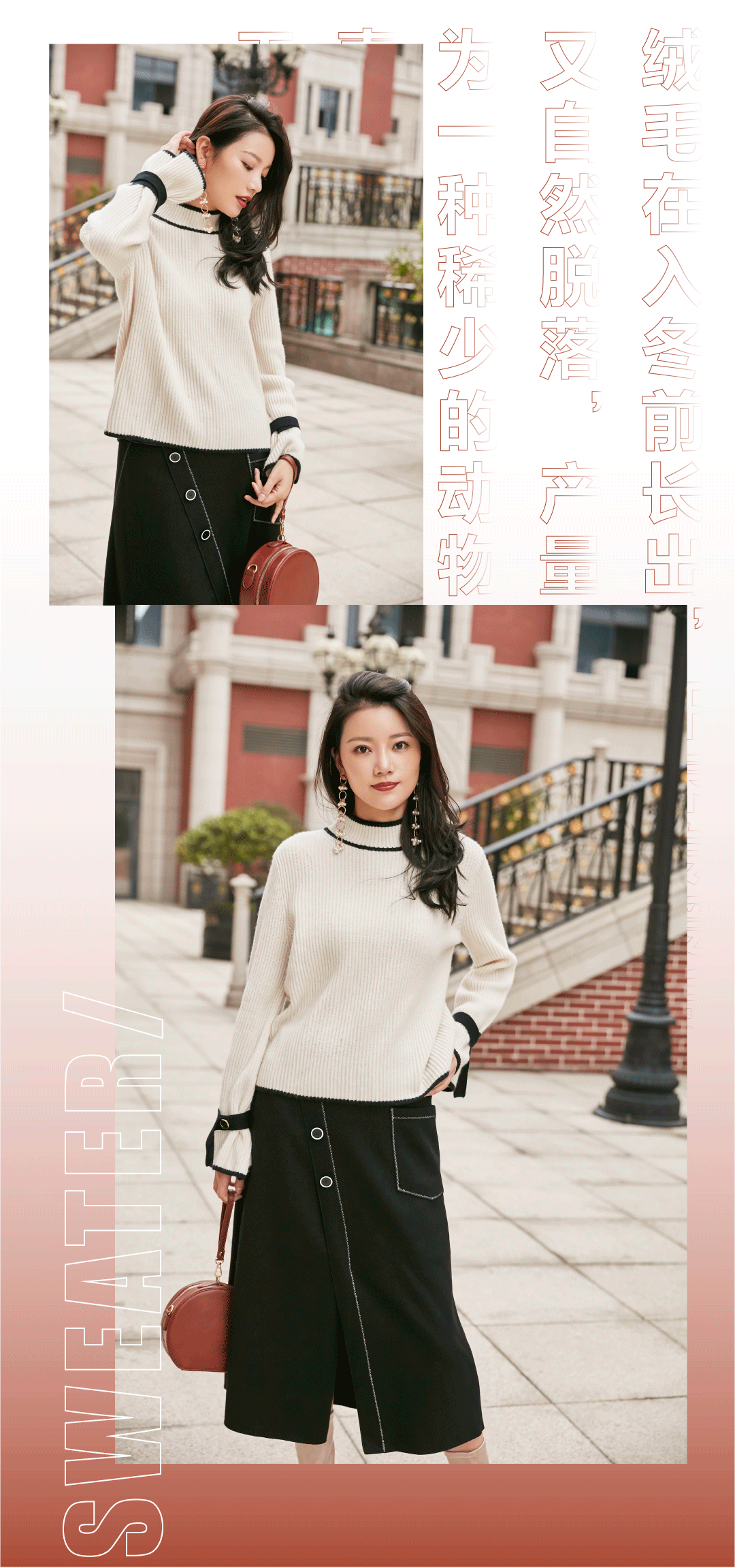 秋冬不能少了一件毛衫,其他的就得依靠大衣了。之所以双面呢风头无两,是因为两块不同纹理的面料只能用手工一针一线缝制,费时耗力才如此平整精致。