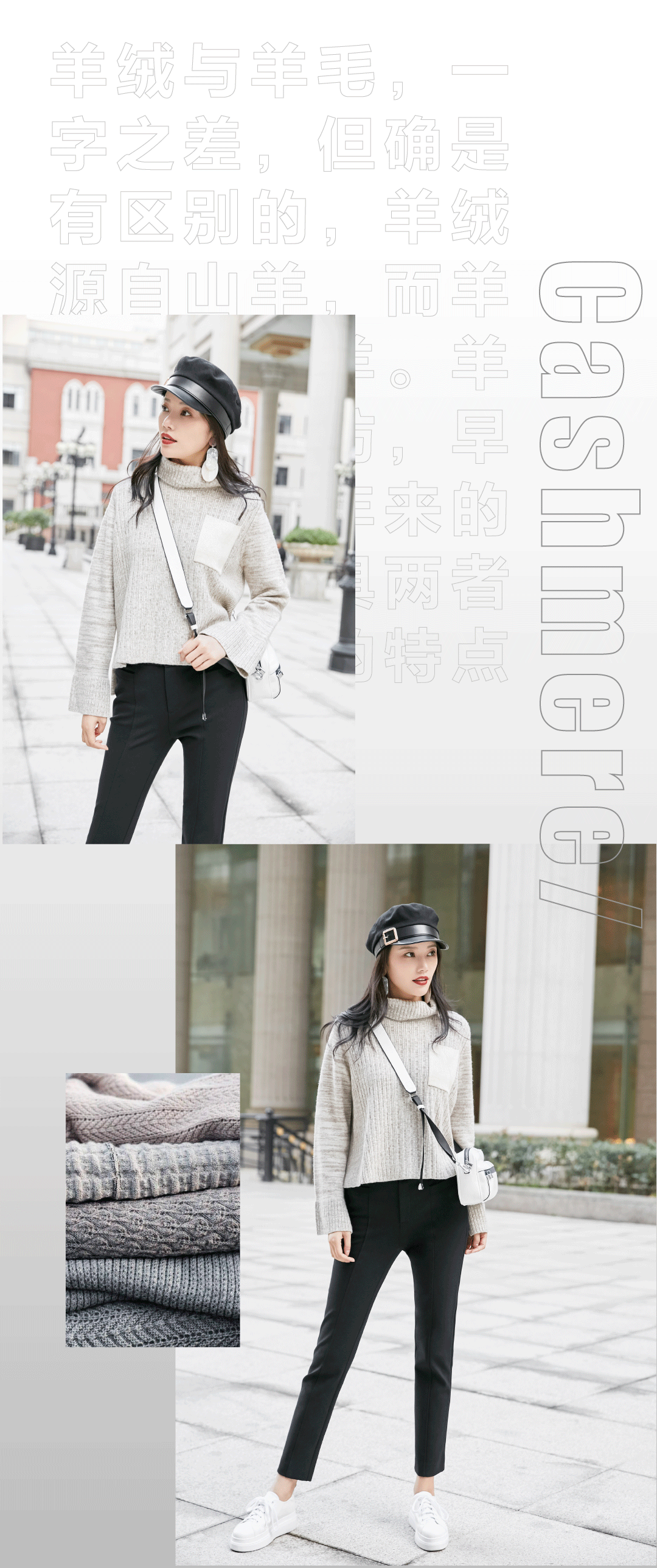 羊绒与羊毛,一字之差,但确是有区别的,羊绒源自山羊,而羊毛属于绵羊。羊绒羊毛混纺,早已成为近年来的趋势,兼具两者柔软舒适的特点。